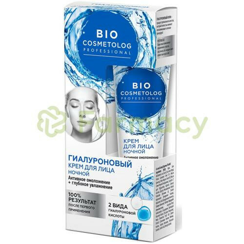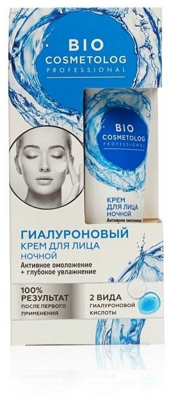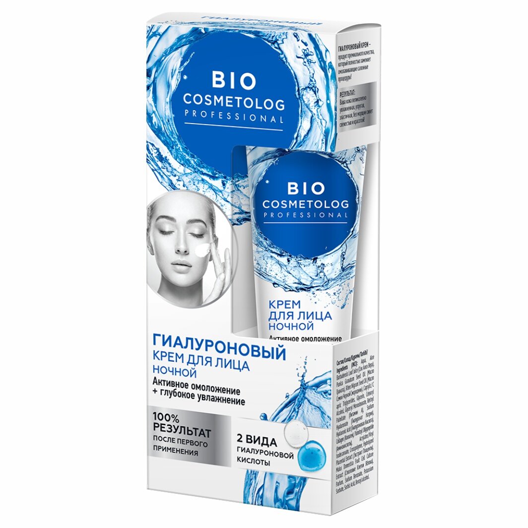 Крем для лица гиалуроновый с эффектом профессиональной биоревитализации интенсивно увлажняет и восстанавливает молодость кожи во время сна.