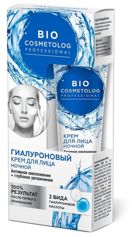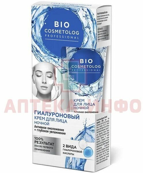 Ночной крем для лица гиалуроновый активное омоложение+глубокое увлажнение серии biocosmetolog professional fito косметик 45 мл Фитокосметик ООО (503990)
