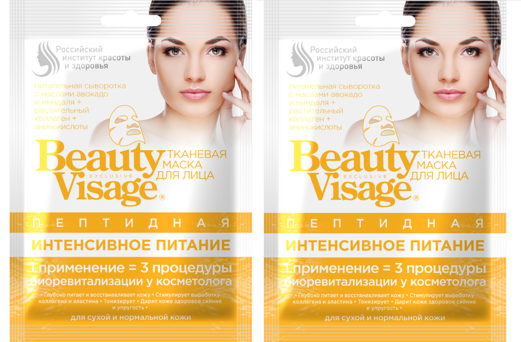 Тканевые маски серии Beauty Visage – уникальная научная разработка врачей-косметологов, не имеющая аналогов среди средств домашнего ухода. Это абсолютная инновация, результат многолетней работы технологов, косметологов и специалистов по микробиологии. В наших масках эти компоненты имеют такой размер молекулы, который способен максимально глубоко проникнуть в кожу, на ту же глубину, что и при введении подкожно у косметолога. Интенсивное проникновение низкомолекулярных составов масок позволяют эффективно воздействовать на кожу и запустить глубинные процессы восстановления и обновления.