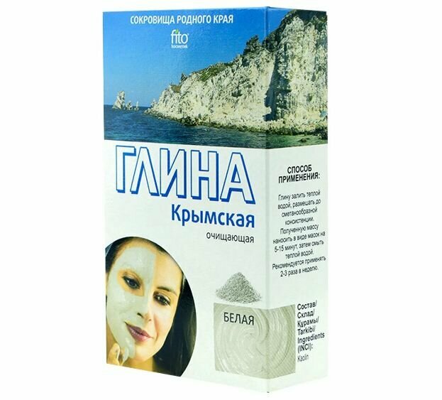 Крымская глина - древнейшее средство для поддержания красоты и здоровья кожи и сравнимое по своим свойствам с глинами Мертвого моря. Обладая исключительной поглощающей способностью, белая глина абсорбирует загрязнения с поверхности кожи, уменьшает жирный блеск и придает приятное ощущение свежести.