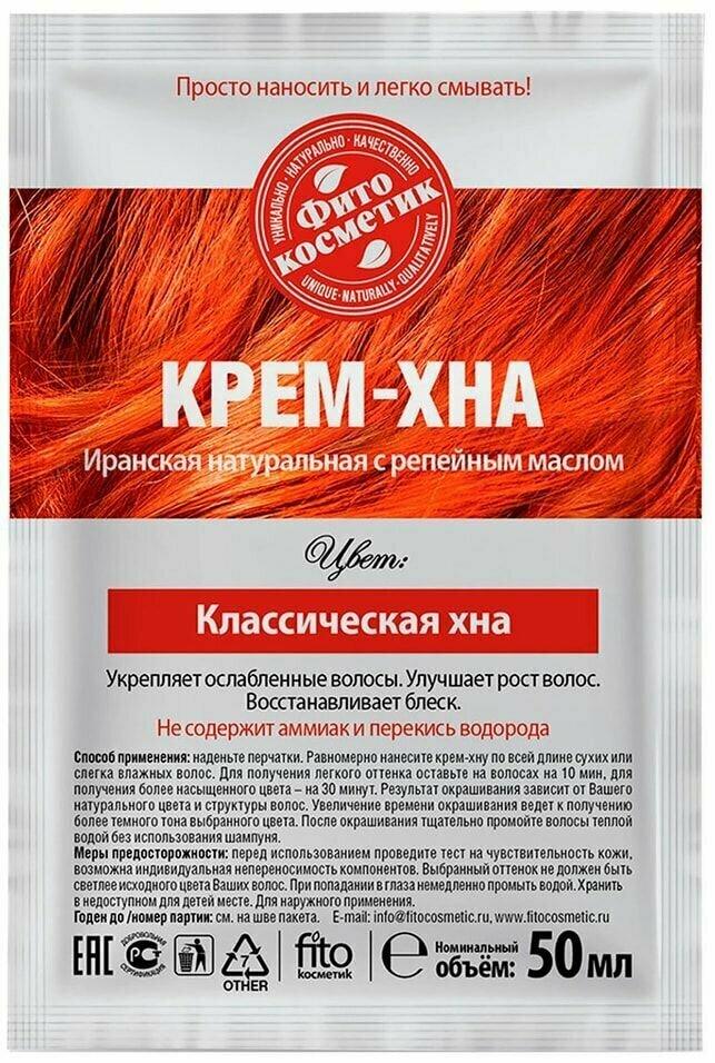 Крем-хна в готовом виде классическая хна с репейным маслом fito косметик 50 мл Фитокосметик ООО (503990)