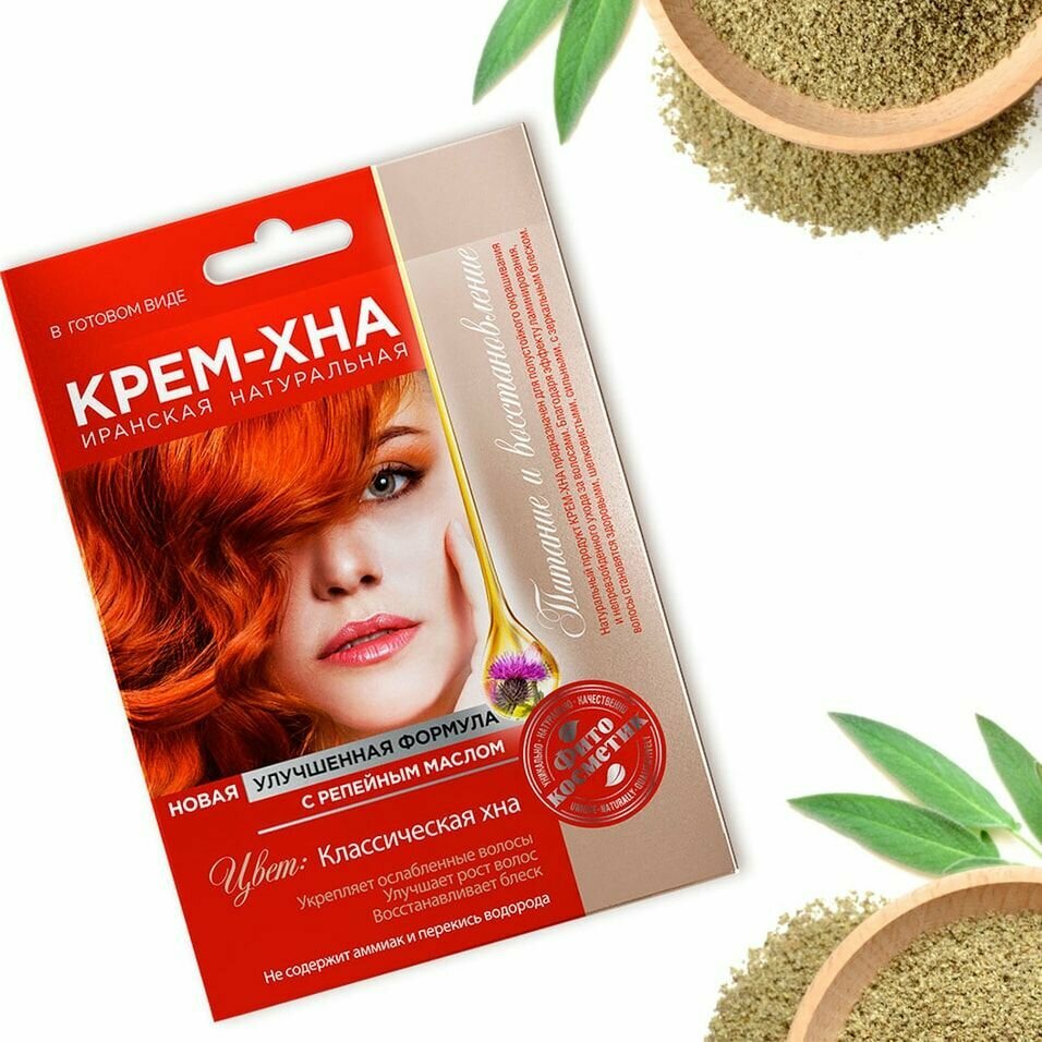 Крем-Хна – это современная натуральная краска для волос, придающая стойкий насыщенный и сияющий цвет. В отличие от обычных красок, в состав которых входит аммиак и перекись водорода,