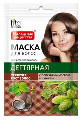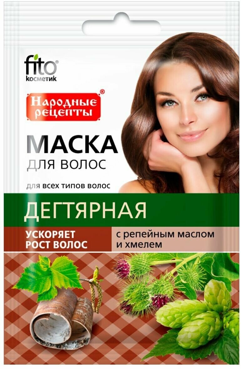 Маска для волос дегтярная с репейным маслом и хмелем для ускорения роста волос fito косметик 30 мл Фитокосметик ООО (503990)