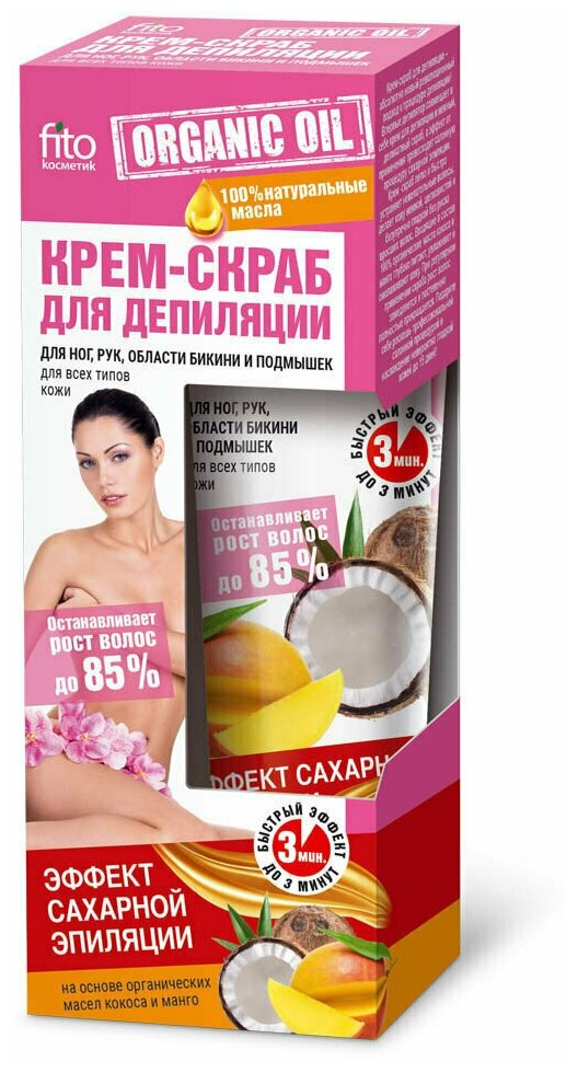 Крем-скраб для депиляции для ног рук области бикини и подмышек для всех типов кожи серии organic oil fito косметик 100 мл Фитокосметик ООО (503990)