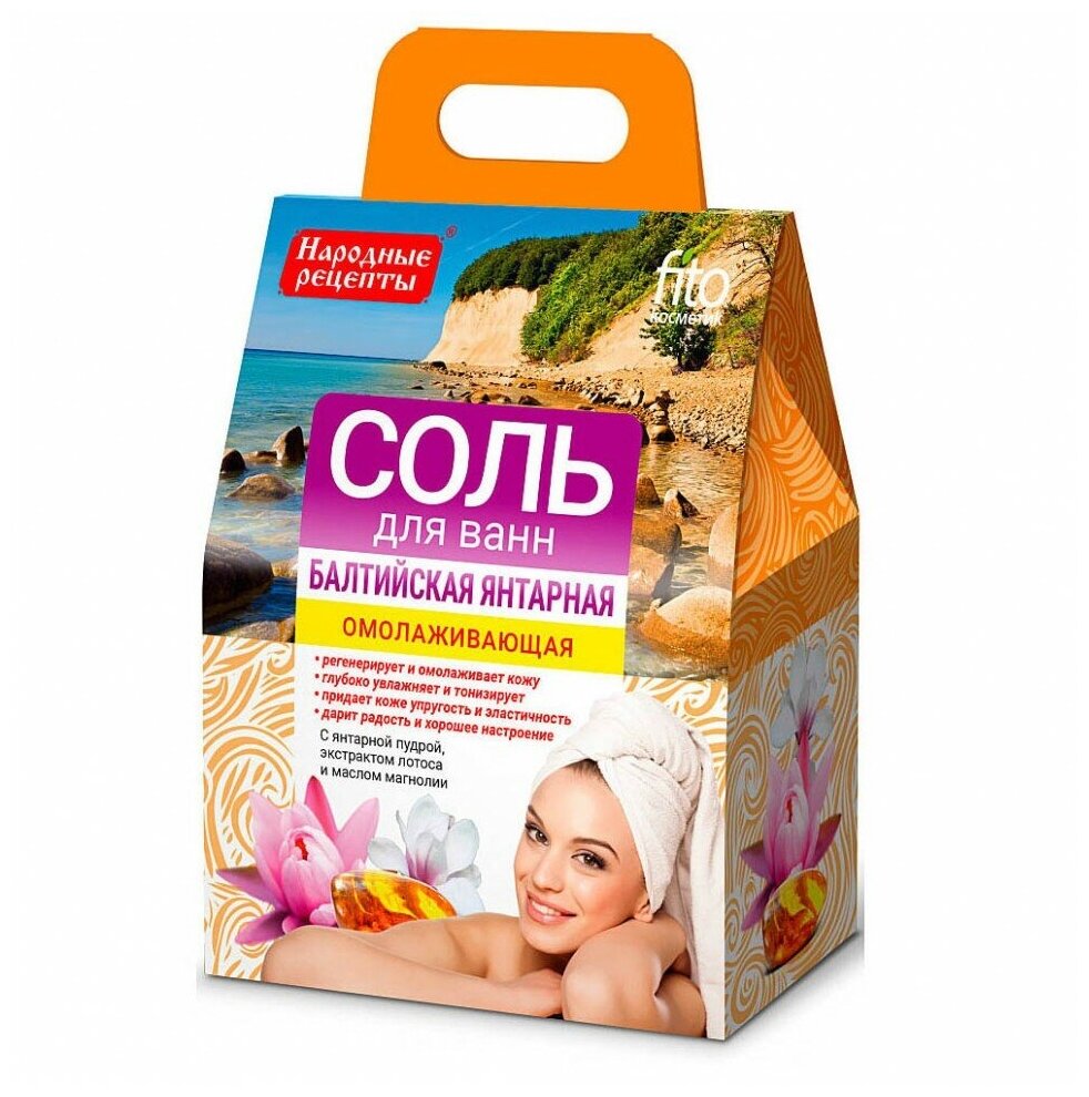 | Полное наименование | Fito Косметик Соль для ванн Балтийская Янтарная омолаживающая 500 грамм |