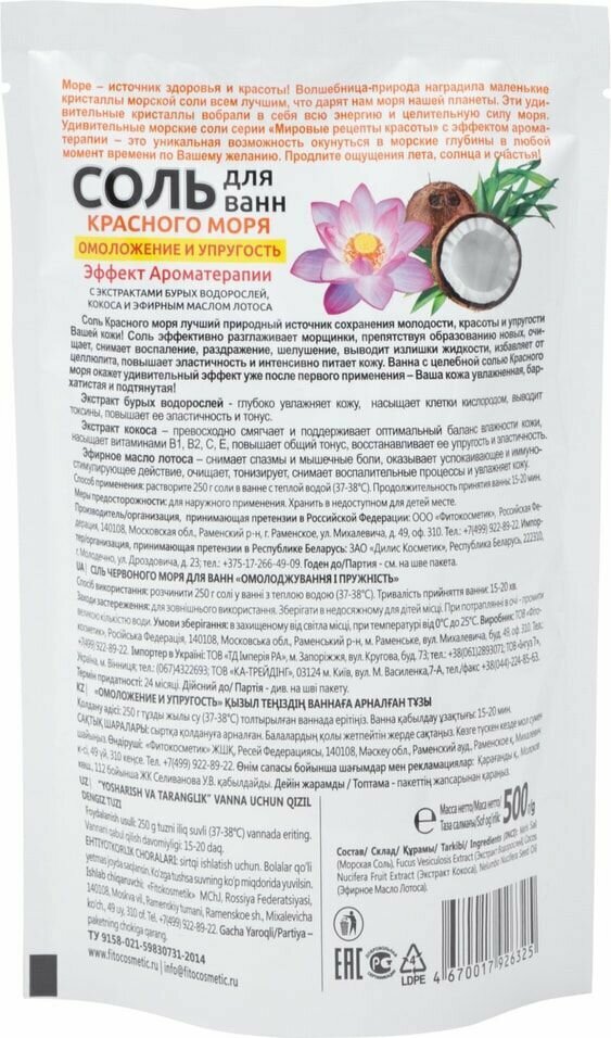 Соль красного моря для ванн омоложение и упругость серии мировые рецепты красоты fito косметик 500 г Фитокосметик ООО (503990)