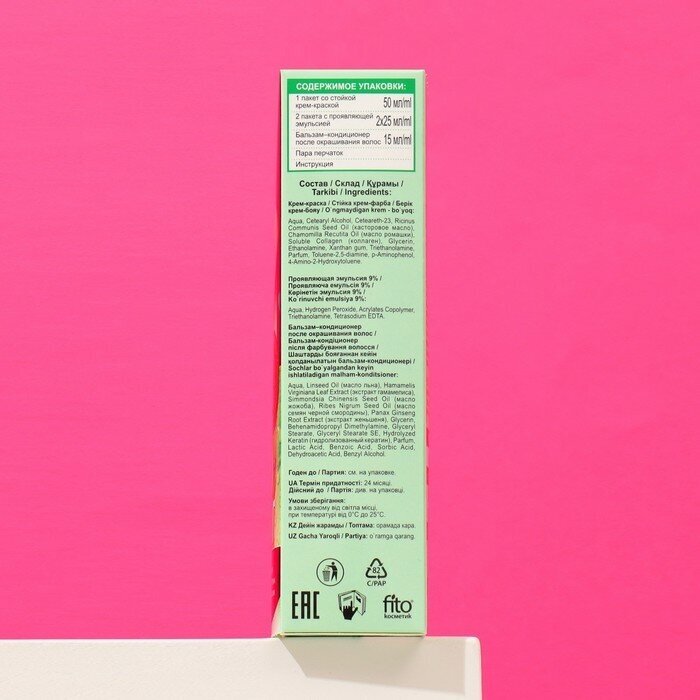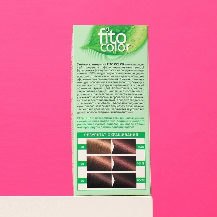 Преимущества крем-краски FitoColor: Единственная в мире Крем-краска, которая имеет 100% натуральную основу. Не содержит аммиак, без запаха. Инновационная формула крем-краски. Обладает эффектом bio-ламинирования. Глубокое проникновение в структуру волос для более стойкого цвета. Надежное закрашивание седины. Наличие натуральных масел и органических экстрактов. Уход, защита, питание Ваших волос. Широкий ассортимент цветовой гаммы. Превосходная замена дорогостоящим салонным процедурам.