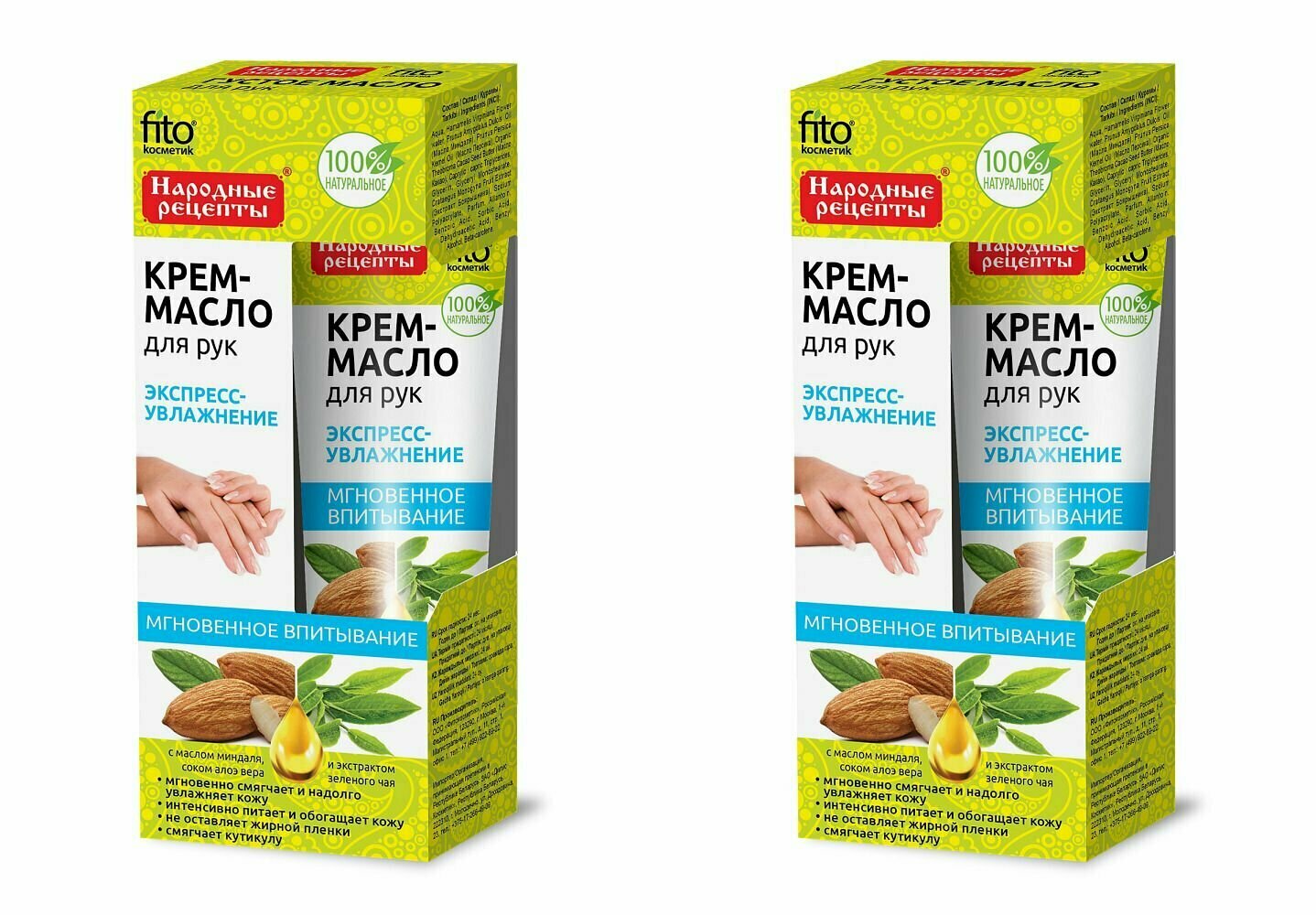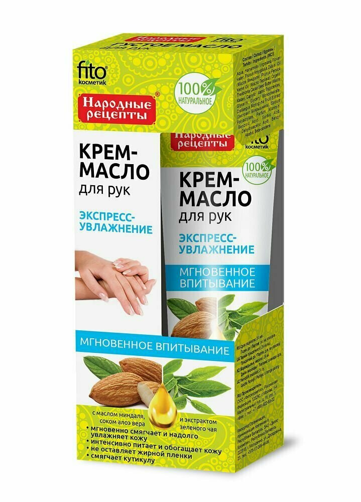 Крем?масло для рук экспресс-увлажнение с маслом миндаля соком алоэ вера и экстрактом зеленого чая серии народные рецепты fito Фитокосметик ООО (503990)