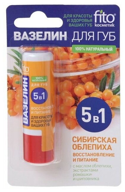 | Полное наименование | Вазелин для губ Сибирская облепиха |