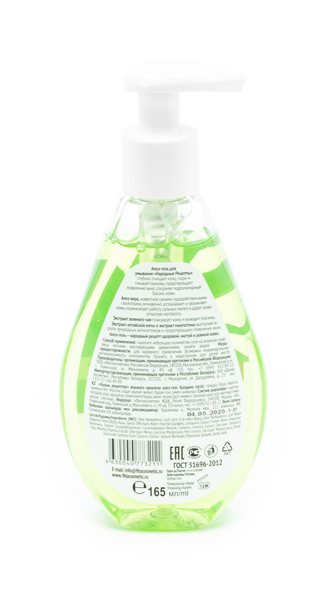 Алоэ-гель для умывания серии народные рецепты кристально очищающий с антисептическим эффектом fito косметик 165 мл Фитокосметик ООО (503990)