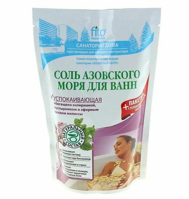 | Полное наименование | Соль Фитокосметик для ванн Азовского моря успокаивающая 500 гр |