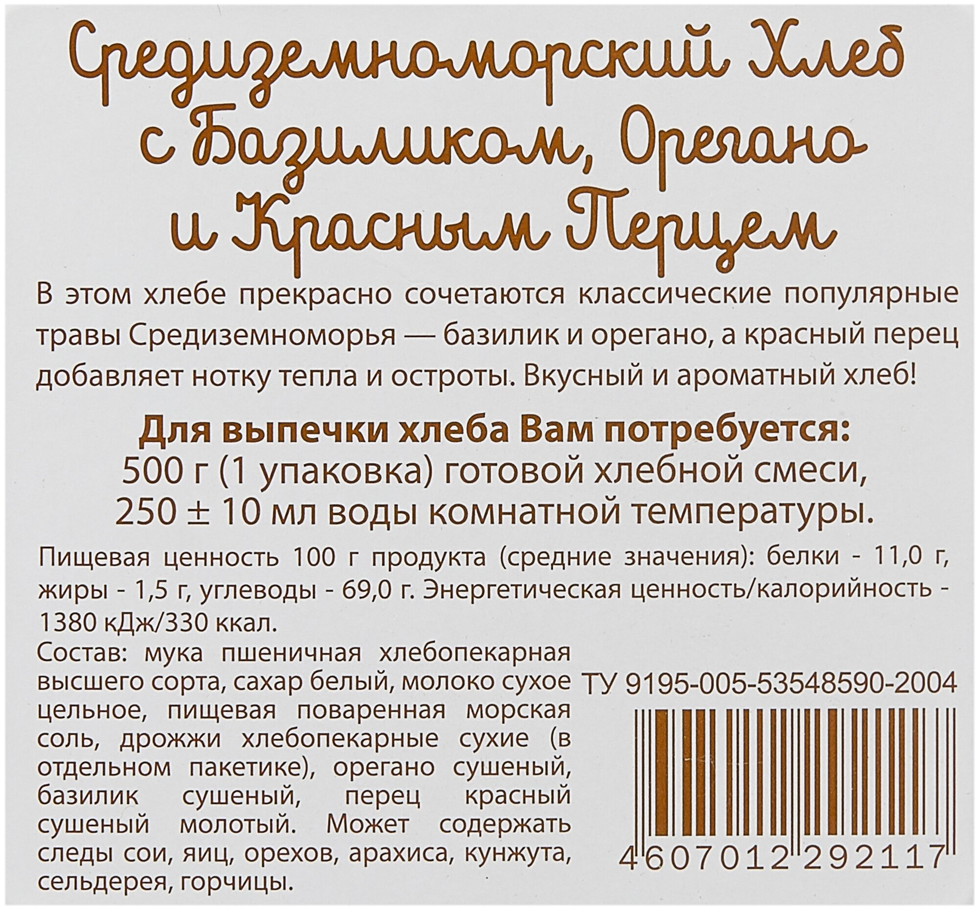 Смесь для выпечки С.Пудовъ Средиземноморский хлеб с базиликом орегано и красным перцем 500г