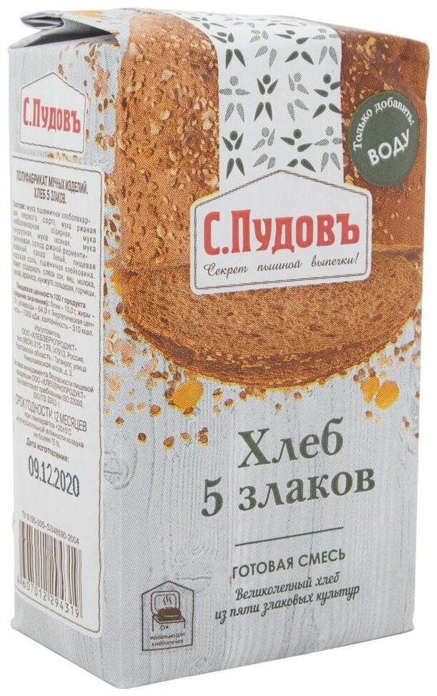 Сервис сравнения цен СкидкаГИД предлагает сравнить цены на товар «Смесь для выпечки С.Пудовъ Хлеб 5 злаков 500г»