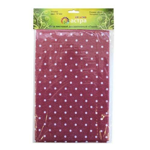 Фетр листовой декоративный "Горох" Астра 10мм 180 гр 20*30 см 5 шт/упак (YF 602 красный) (размер: 20х30 см)