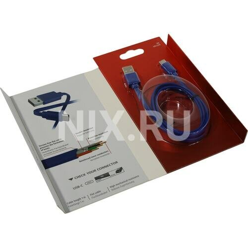 Модель: 00187229 USB Type-C USB A(m) 1м синий плоский
