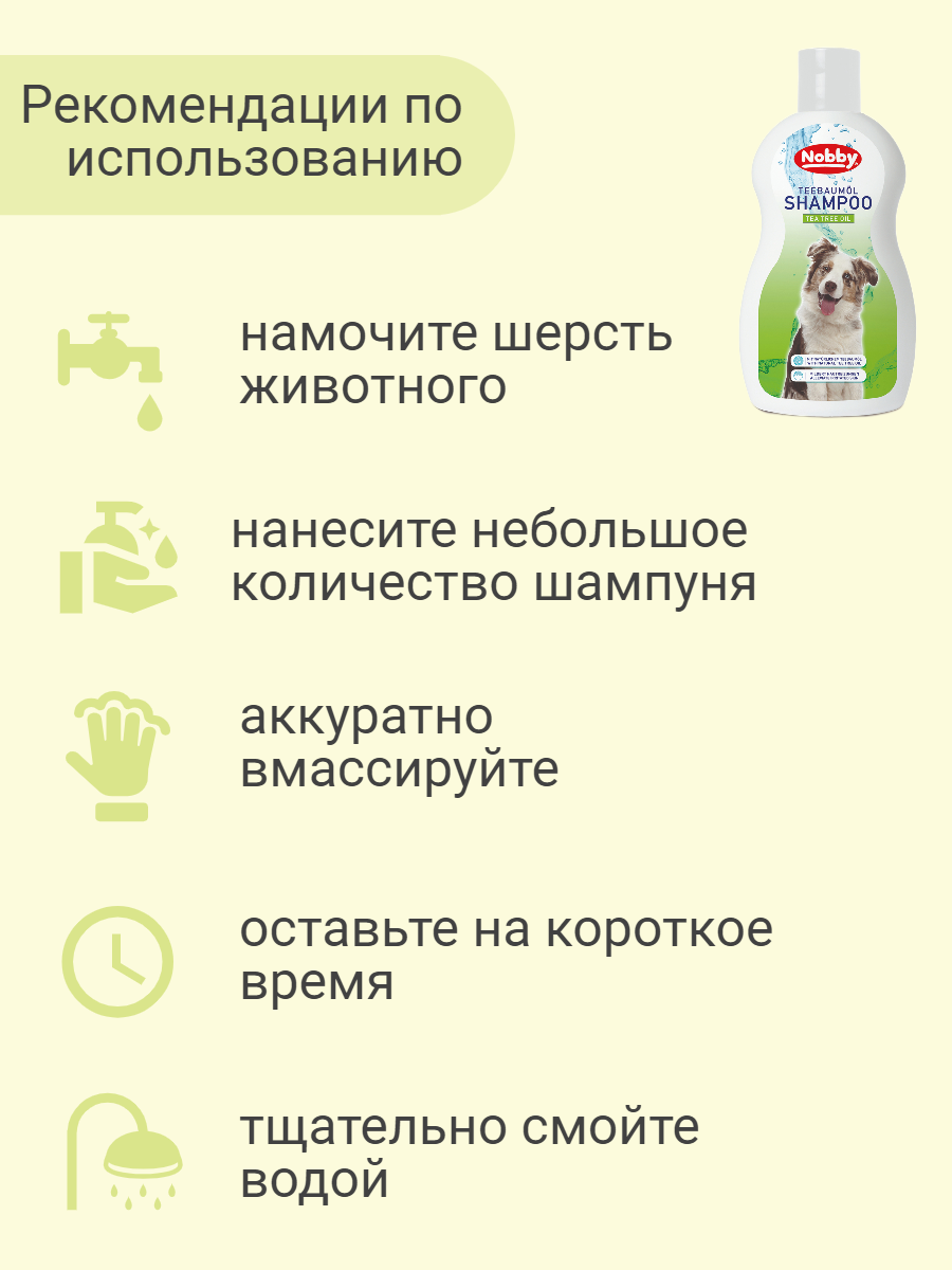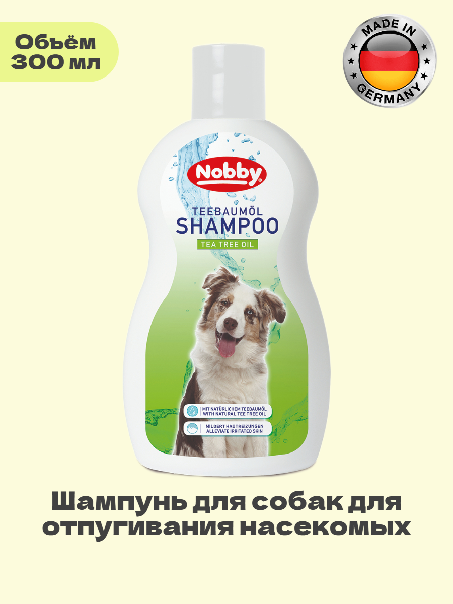 Шампунь для собак для отпугивания насекомых. Масло чайного дерева отпугивает паразитов и снимает раздражение или воспаление кожи, вызванные укусами насекомых. Помогает очистить, укрепить и увлажнить волосяные фолликулы. Шампунь увлажняет и адаптирован к значению pH у собак. Для всех пород собак.