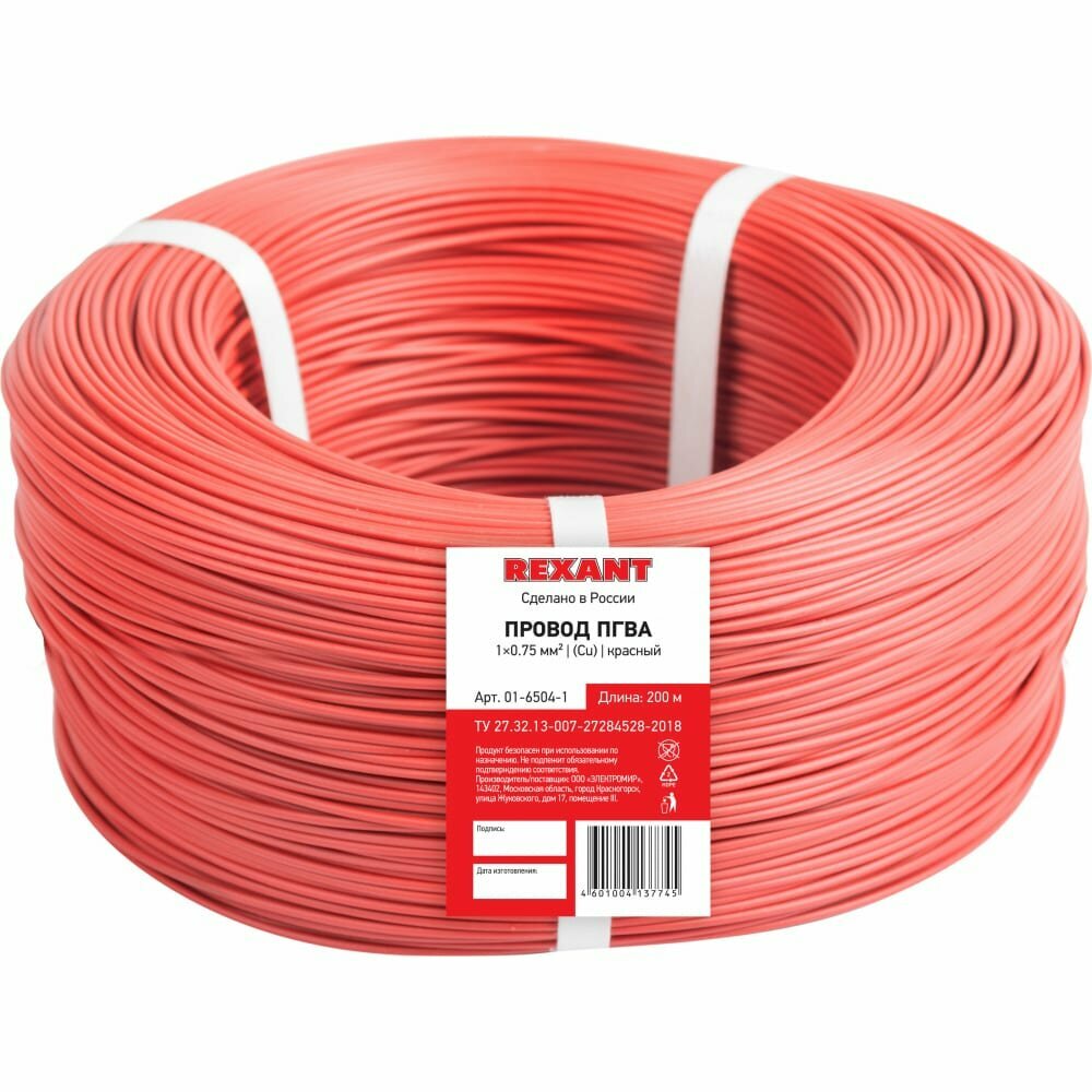 Провод ПГВА REXANT предназначен для гибкого соединения автотракторного электрооборудования и приборов с номинальным напряжением до 48 В, изготавливается для автомобильной проводки и элементов питания и управления.