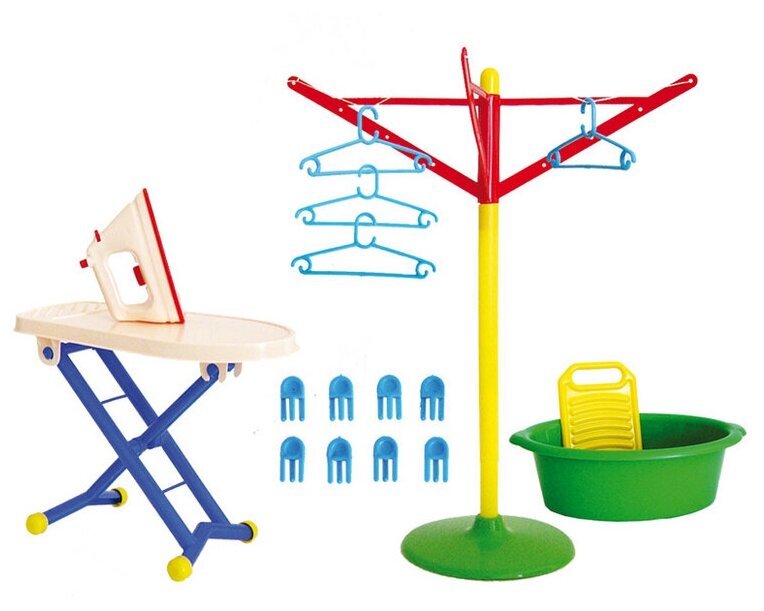 | Комплектация | тазик, стиральная доска, гладильная доска, утюг, сушилка, плечики 4 штуки, прищепки 8 штук |