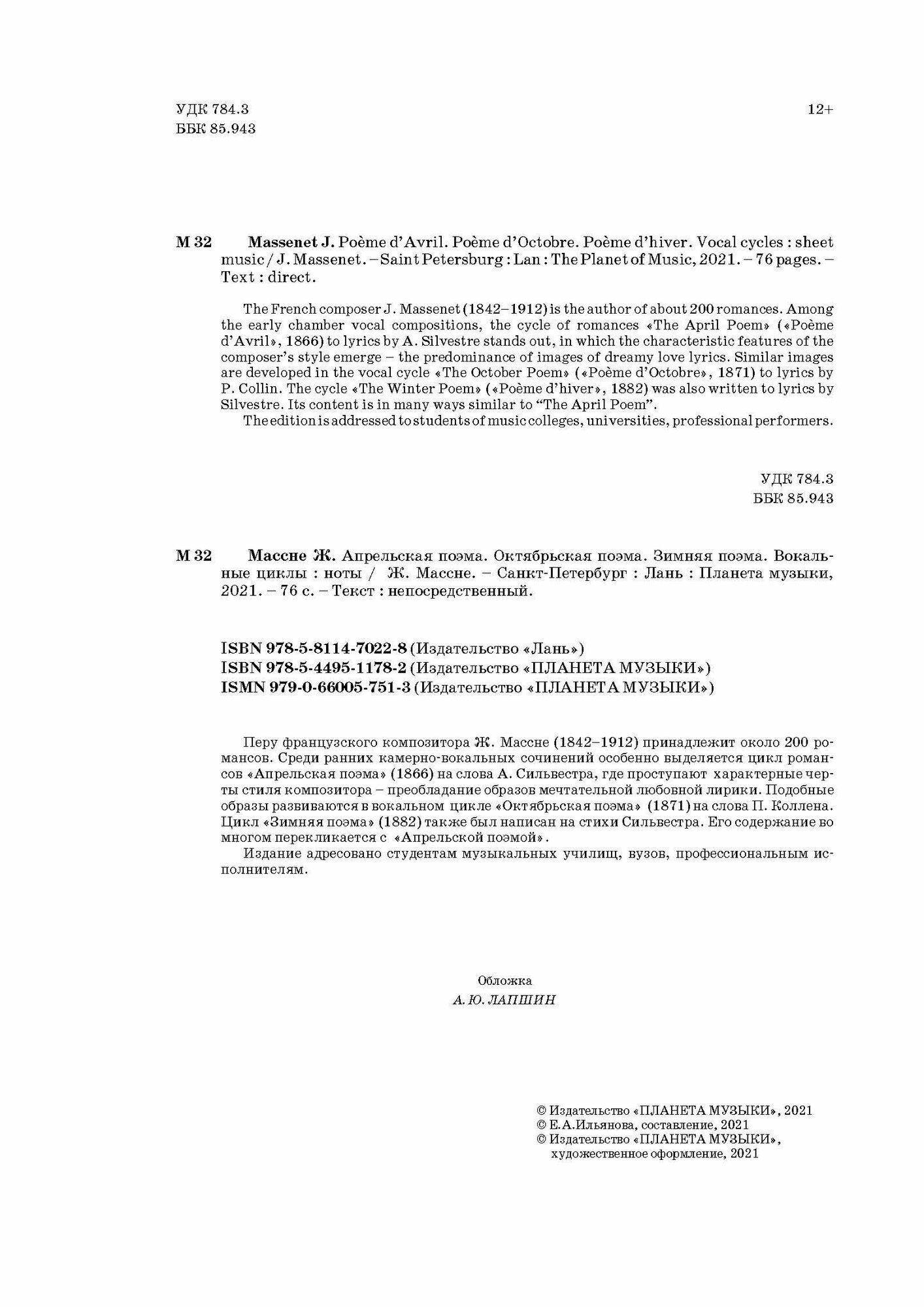 Апрельская поэма. Октябрьская поэма. Зимняя поэма (Ж. Массне); Издательство «Планета музыки», 2021