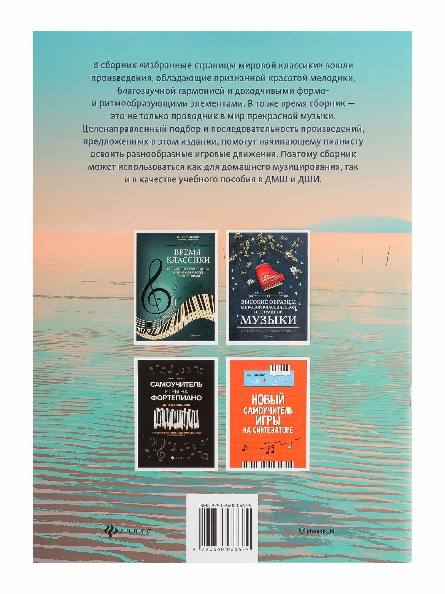 В сборник «Избранные страницы мировой классики» вошли произведения, обладающие признанной красотой мелодики, благозвучной гармонией и доходчивыми формо– и ритмообразующими элементами. В то же время сборник — это не только проводник в мир прекрасной музыки. Целенаправленный подбор и последовательность произведений, предложенных в этом издании, помогут начинающему пианисту освоить разнообразные игровые движения.
