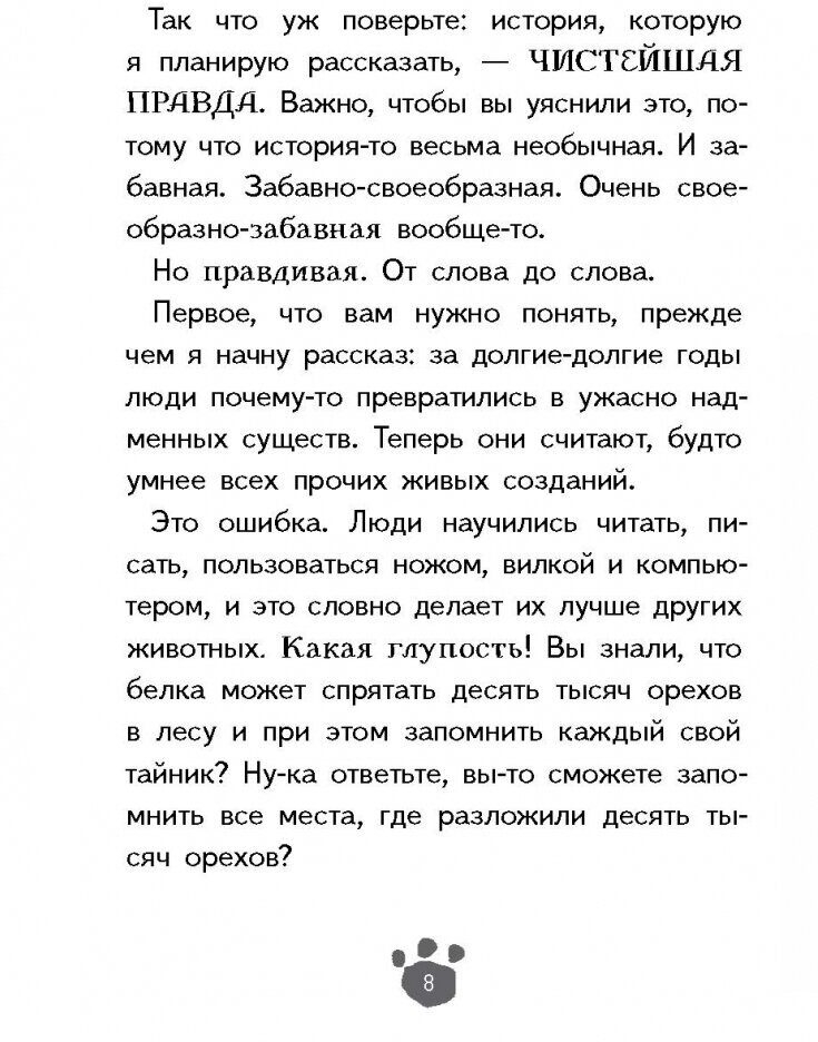 Очень, очень смешная книга, такой ситком из жизни животных среди людей. Немного похоже на "Альфа", немного на "Друзей" (если уж с сериалами сравнивать). Иллюстрации — чудесные, под стать той сумасшедшинке, которая есть в тексте. :)