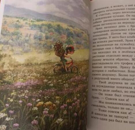 Новинка от Поляндрии. Сразу хочется отметить узнаваемый почерк художника Эмилии Дзюбак! Очень уютный формат, много текста, объёмная история. Не много иллюстраций , но все они прекрасные, цветные и в нужном месте. История не совсем про травы, она на много глубже. "Маленькая" бабушка(мама- мамы мальчика) путешественница, не сидит на месте, и вот Эрику сообщают, что бабушка будет жить с ними, как же он рад! Он обожает ее рассказы, то как она не много фантазирует, поддерживает, и говорит ему много важного. Но…бабушка уже не та что раньше, она болеет. И да в книге бабушка умирает. Книга о потере, в том, числе. Бабушка еще увидится с внуком, и им есть еще что сказать друг другу. Светлая история, не смотря на казалось бы грустную тему. Чудесная бабушка , говорящая совершенно обычные, но такие важнейшие вещи, приводя примеры. И веря в мальчика всем сердцем.
