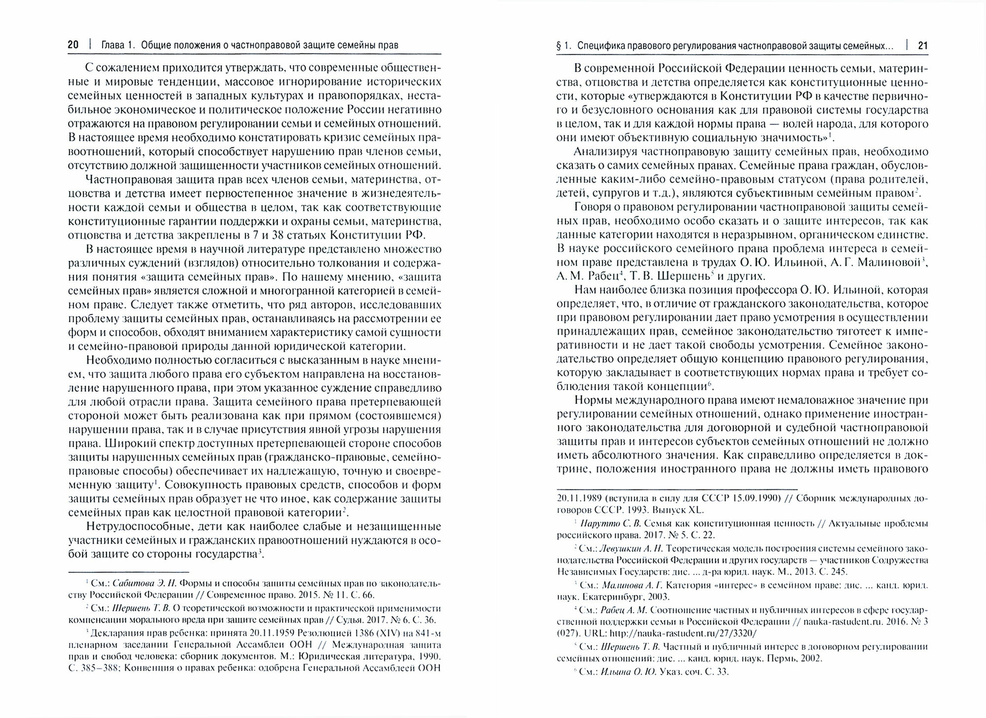 Трудно недооценить роль семьи и значение семейных правоотношений в жизни любого общества. На сегодняшний день в доктрине и практике сложилось мнение, что российская семья должна рассматриваться как одна из высших конституционно-правовых ценностей. В современных экономических и социально-политических условиях семья и семейные отношения нуждаются в особой правовой охране и защите, и в комплексе с гражданско-правовой наибольшее значение приобретает семейно-правовая защита, которая характеризуется специальными формами, способами и мерами.