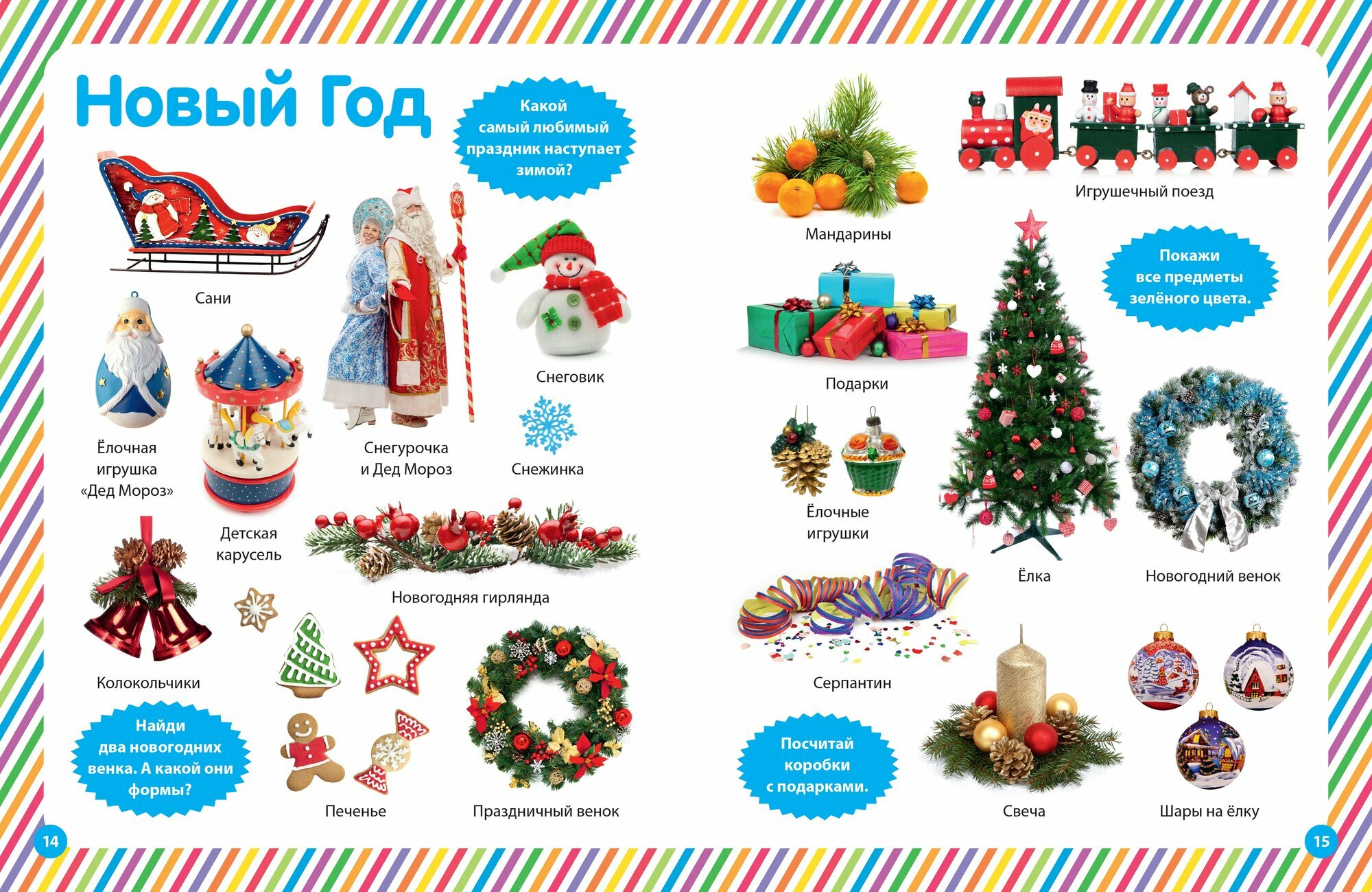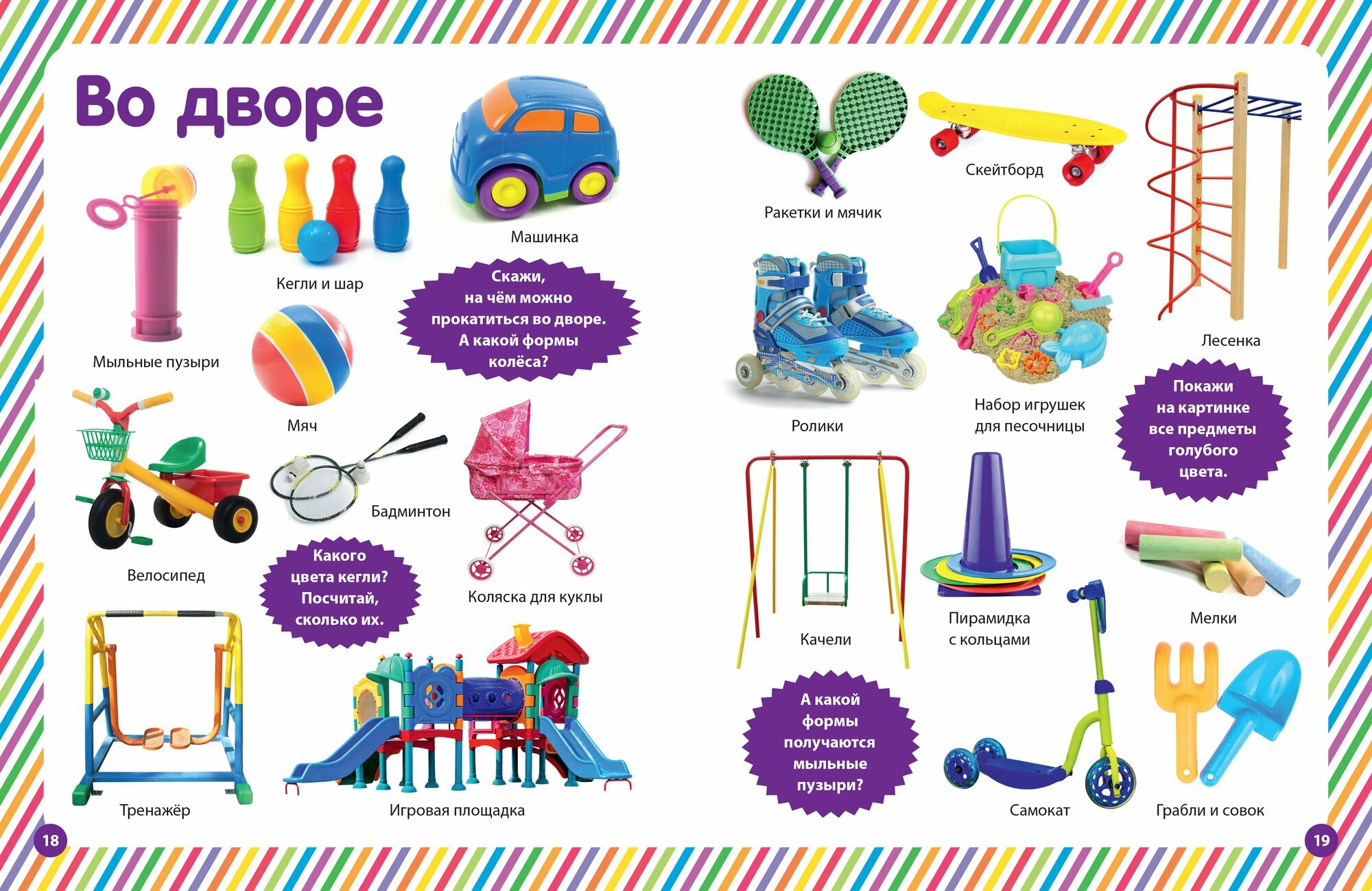 Перед вами фотокнига с реалистичными изображениями самых разных вещей, предметов, животных и растений, которые окружают вашего ребёнка каждый день: осенью и зимой, весной и летом, играет ли он на детской площадке или гуляет с вами в парке. Разглядывая яркие картинки и выполняя вместе с вами несложные задания, малыш будет узнавать и научится называть разные предметы, различать цвета и формы и потренируется в простом счёте.
