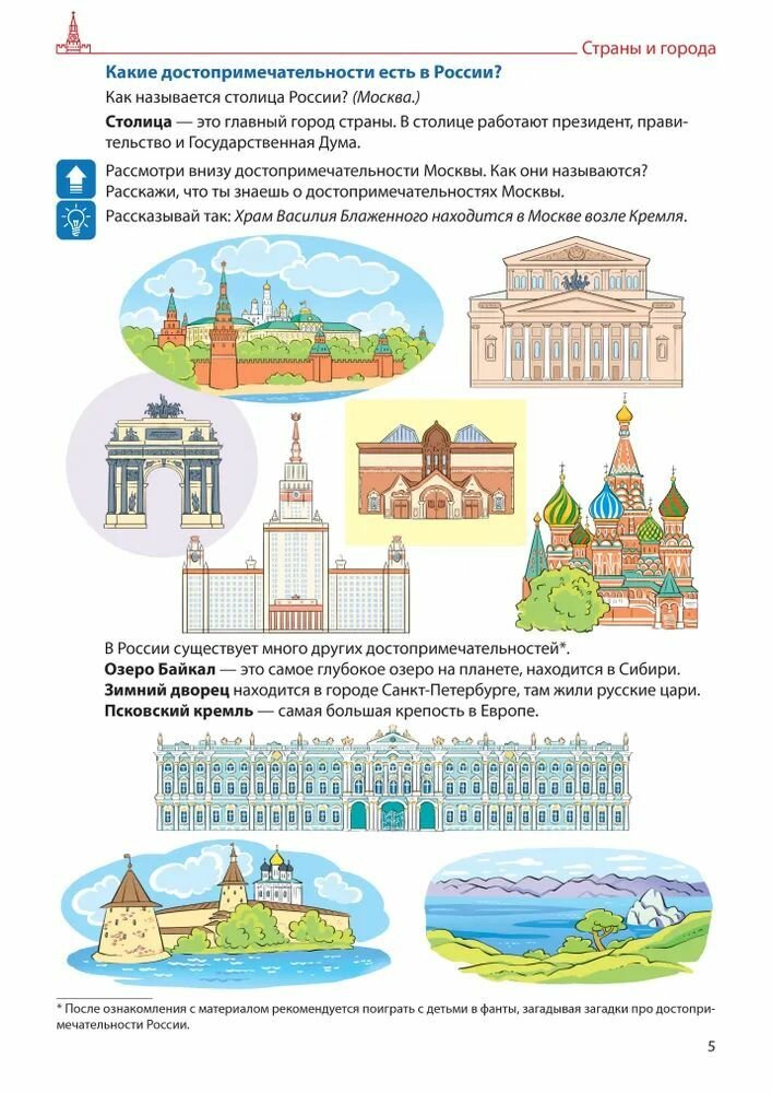 Настоящее пособие содержит задания для пополнения и систематизации словарного запаса и развития связной речи у детей 4—7 лет. Каждое задание направлено на развитие зрительной или слухоречевой памяти, а также мелкой моторики, координации, подготовки руки к письму. Данная тетрадь — пятая из пяти: в каждой из них собрано несколько лексических тем по разным направлениям (растения, животные, бытовое окружение, транспорт, города и т.д.). Все занятия делятся по степени сложности, в предисловии даны методические рекомендации.