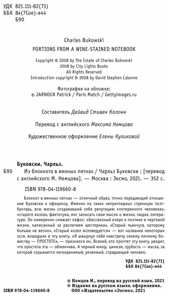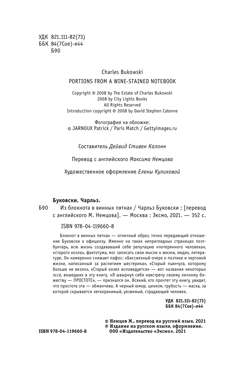 Из блокнота в винных пятнах (Чарльз Буковски); Эксмо, Редакция 1, 2021