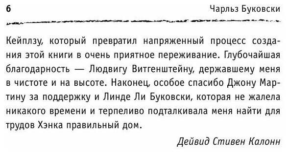 Увлекательное чтиво, чтобы скоротать вечерок. Книгу приобрел из-за отдельного оформления серии с фото автора на обложке. Творчеством Чарльза Буковски увлекаюсь давно и на мой взгляд эта книга один из наиболее удачных его сборников, чтобы глубже понять переживания автора. В нем есть все, что отражает его личную природу и стиль, пройденный жизненный путь, его пристрастия к алкоголю и бегам, отношения с женщинами, которые он отразил на страницах своих рассказов, и в личной колонке подпольных газет и журналов, в которых писал. Написано честно и без прикрас, с иронией к своей жизни и местами крепким, но цепким словцом.