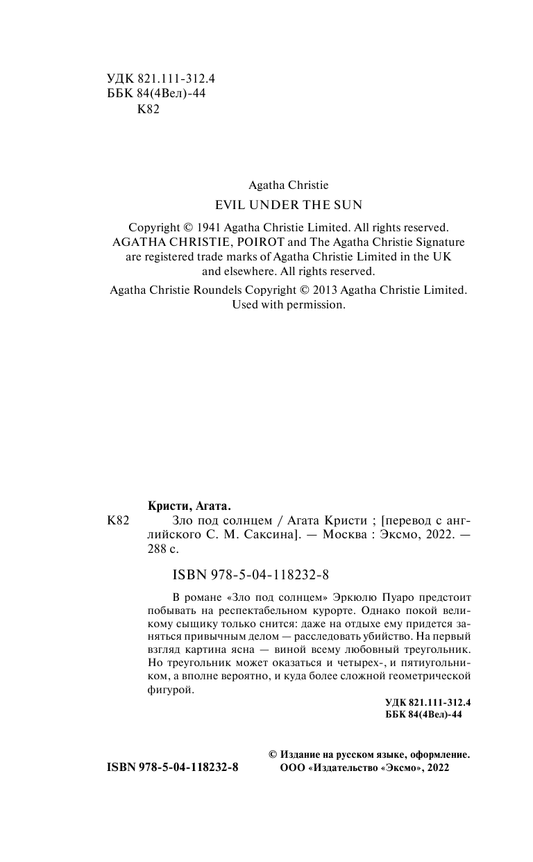 Книга: Зло под солнцем (Агата Кристи); Эксмо, Редакция 1, 2023