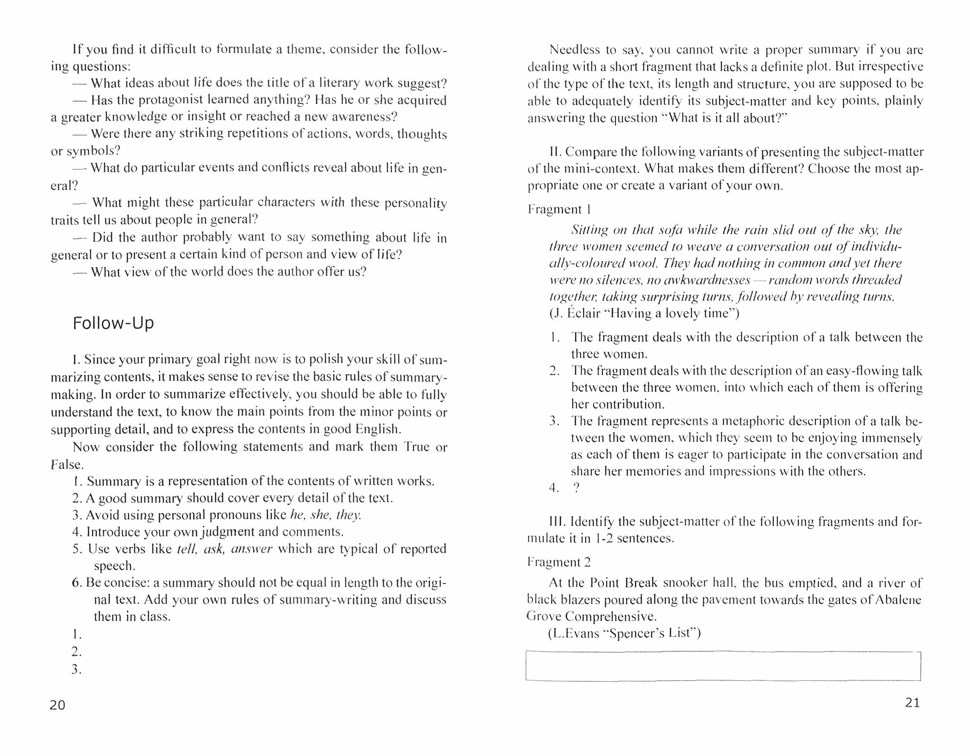 Учебно-методическое пособие предназначено для студентов старших курсов факультета иностранных языков и призвано способствовать формированию и развитию у учащихся навыков комплексно лингвостилистического анализа текста на английском языке, а также может быть использовано в качестве справочного материала при подготовке к государственному экзамену. Пособие содержит теоретические и практические сведения по основным аспектам анализа текста и стилистическим приемам. В Приложении представлены отрывки из произведений англоязычных авторов XIX-XXI вв.