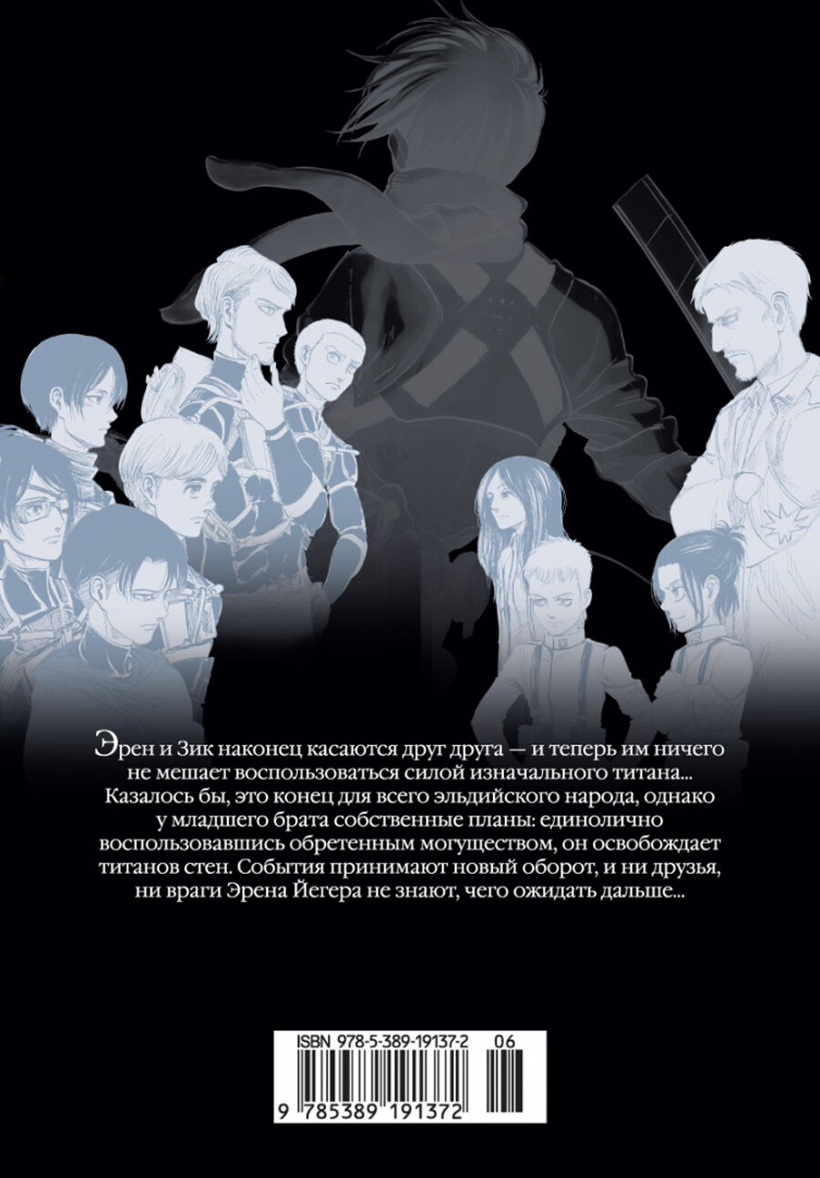 Эрен и Зик наконец касаются друг друга – и теперь им ничего не мешает воспользоваться силой изначального титана … Казалось бы, это конец для всего эльдийского народа, однако у младшего брата собственные планы: единолично воспользовавшись обретенным могуществом, он освобождает титанов стен. События принимают новый виток, и ни друзья, ни враги Эрена Йегера не знают, чего ожидать дальше…