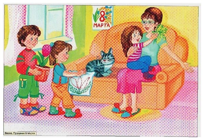Наглядно-дидактическое пособие "Весна" серии "Рассказы по картинкам" предназначено для развития связной речи у детей 3-7 лет на групповых и индивидуальных занятиях в детском саду и дома. В состав набора входит 8 красочных иллюстраций на тему "Весна" (праздник 8 Марта, помощь взрослым, прогулка в лесу и др.). Данный наглядный материал с успехом может быть использован на занятиях по ознакомлению с окружающим миром, для развития речи и мышления, в логопедических играх, для развития логического мышления.