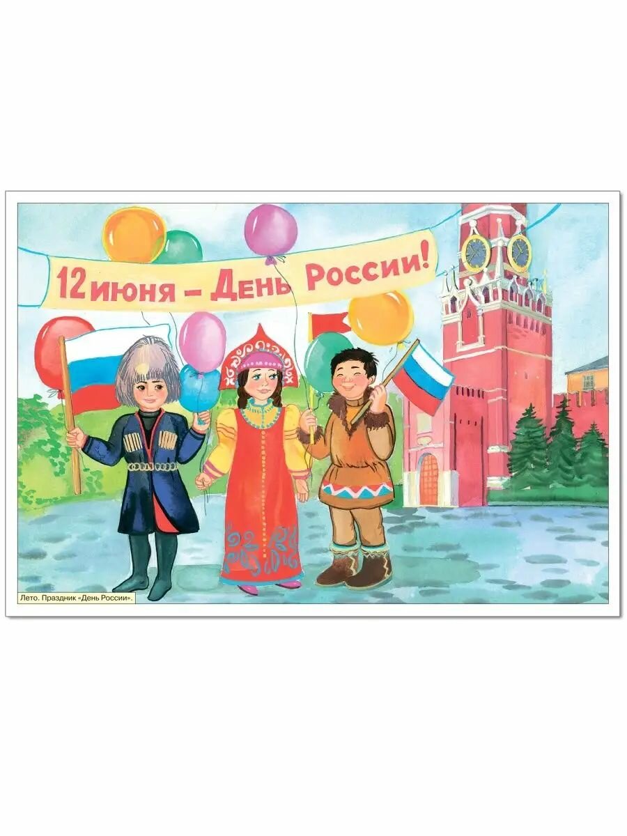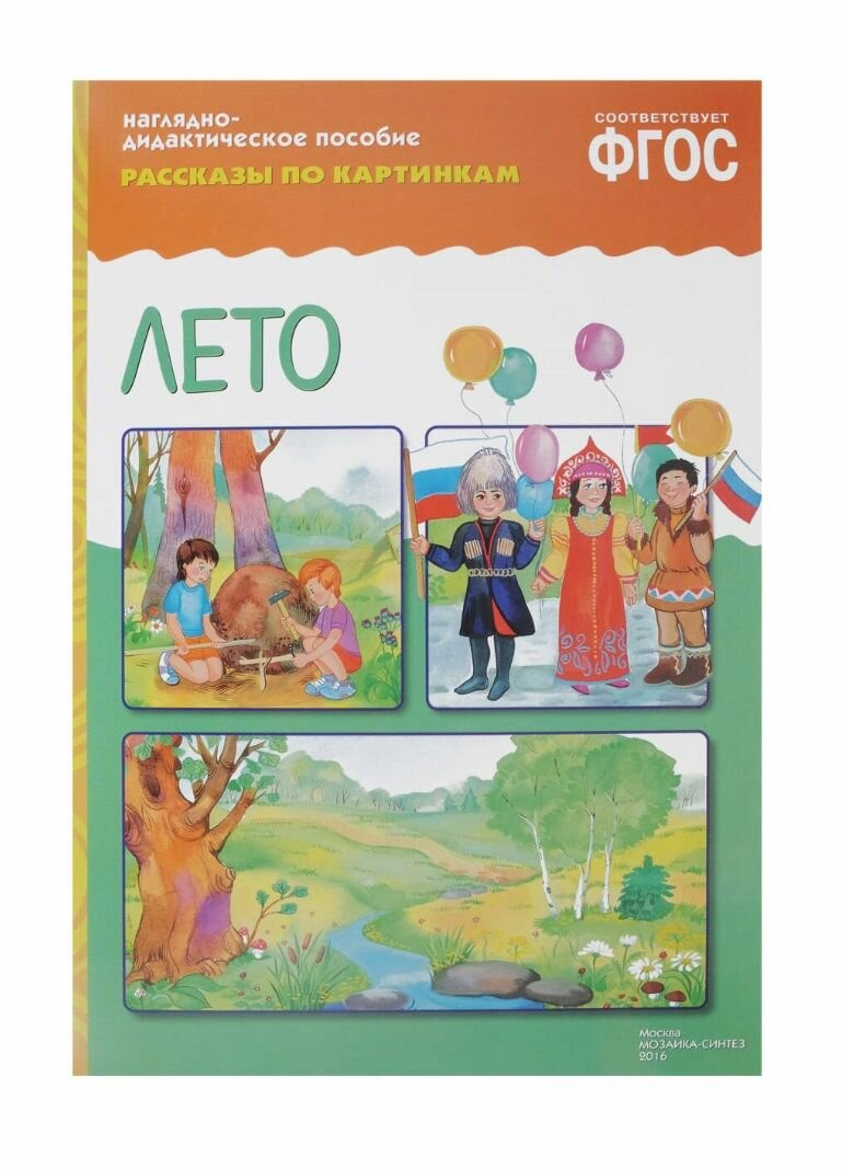 Наглядно-дидактическое пособие «Лето» серии «Рассказы по картинкам» предназначено для развития связной речи у детей 3-7 лет на групповых и индивидуальных занятиях в детском саду и дома. В пособии представлены 8 красочных иллюстраций на тему «Лето» (праздник «День России», работа в огороде и др.). Данный наглядный материал с успехом может быть использован на занятиях по ознакомлению с окружающим миром, для развития речи и мышления, в логопедических играх, для развития логического мышления.