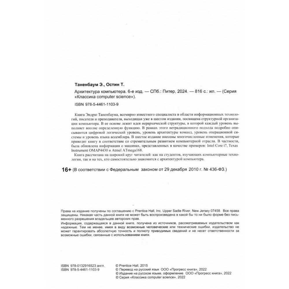 Архитектура компьютера. 6-е изд. (Эндрю С. Таненбаум); Питер, 2025