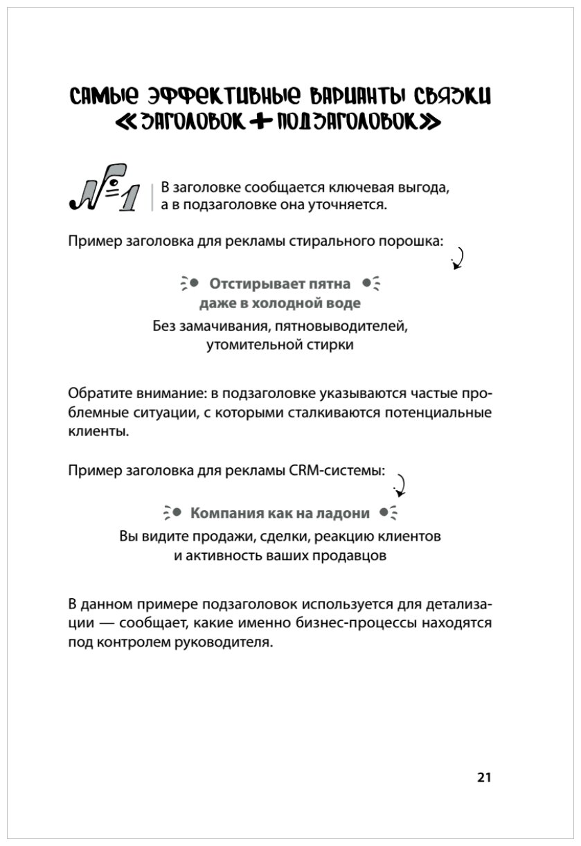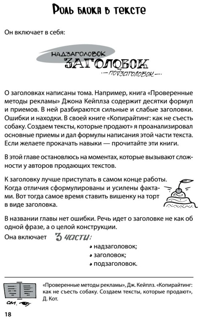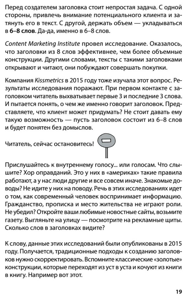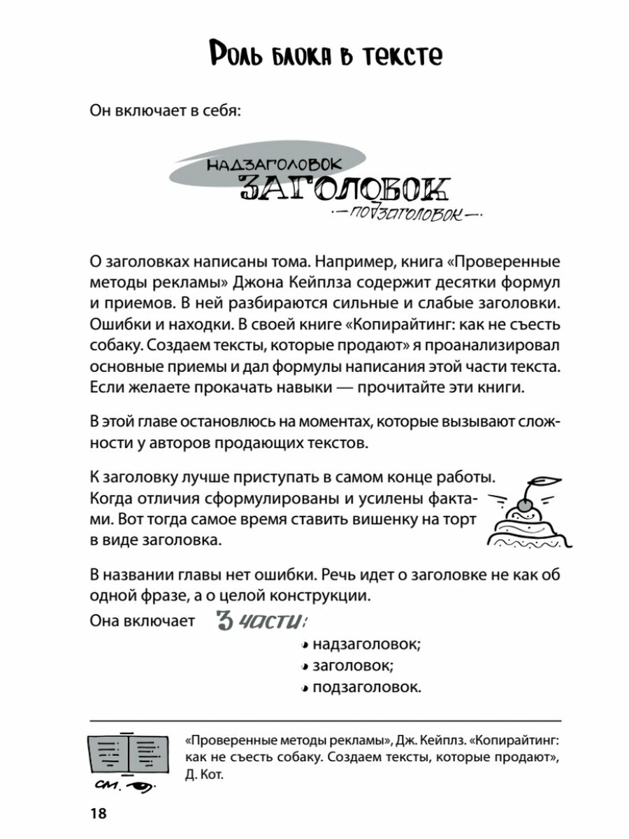 Преподаватель, собственно, по копирайтингу. И довольно долго искал книгу по данной теме, что бы без расфуфыревания на двадцать страниц простой мысли, не размызвання слов на абзац. А чётко понятно. Шаблонно. Все же некоторые вещь пользуются правилом "краткость - сестра таланта" для студентов, что только учатся писать тесты это самое то. Сам текст в книге похож на заметки в тетради. Оформление мне понравилось, рубрикация отличная сразу чётко и понятно. Советую своим обращаться к данной литературе в случае затора и не складных мыслей