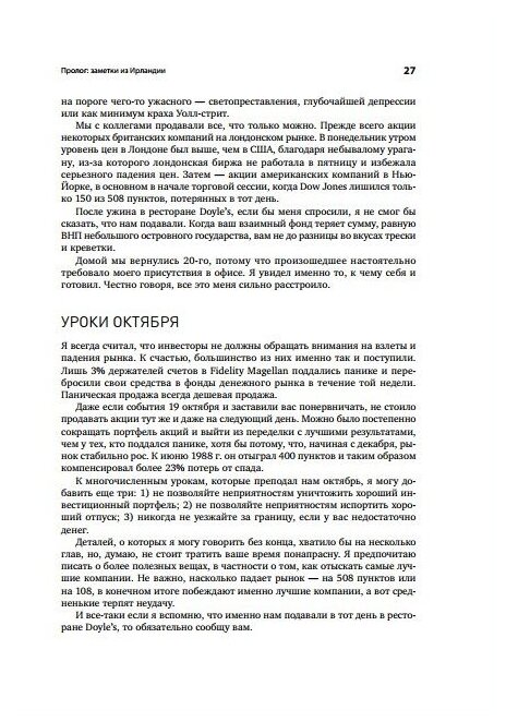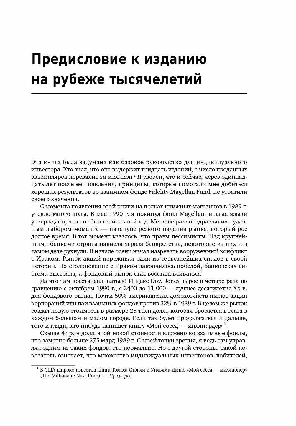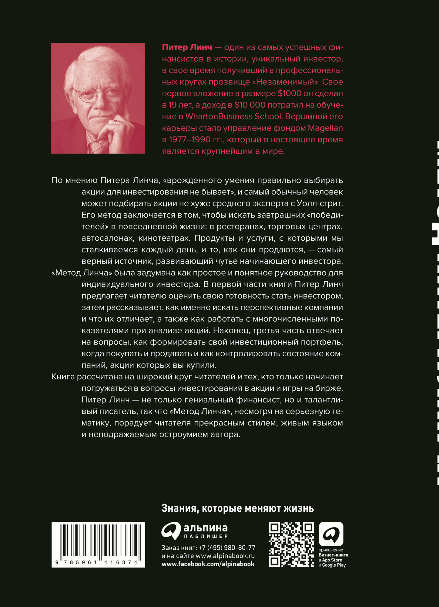 Эта книга принадлежит перу одного из самых успешных финансовых менеджеров в мире. Питер Линч не предлагает волшебных формул и рецептов из серии «как стать миллионером». Его идея проста: несложные приемы оценки позволяют даже начинающему инвестору стать экспертом и принимать решения не хуже профессионалов с Уолл-стрит.