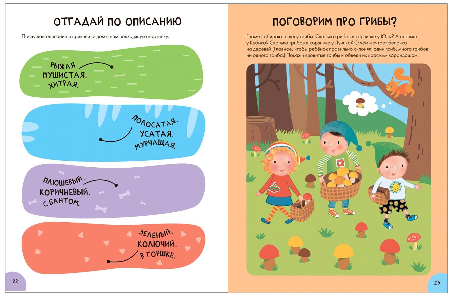 Книга «Развитие речи 3+» из серии «Школа Семи Гномов. Активити с наклейками» предназначена для развития и тренировки грамотной речи у детей от 3 до 4 лет.