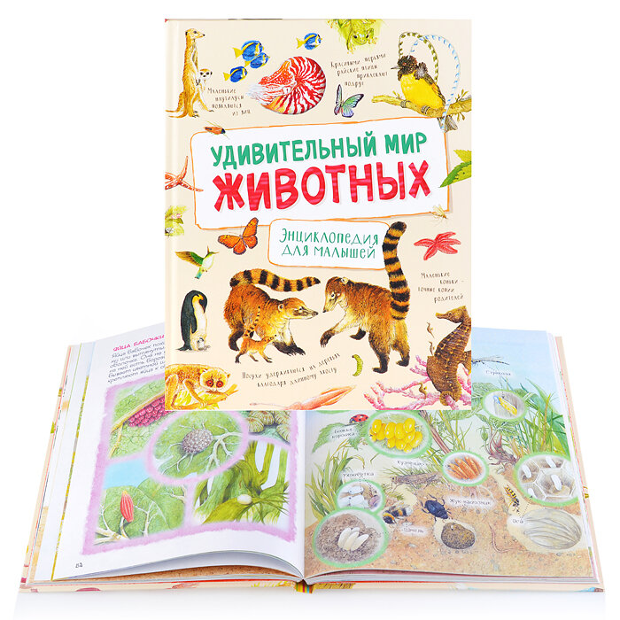 Сегодня большое разнообразие детской литературы и хочется выбрать для ребенка самое лучшее. Эта энциклопедия вполне может стать первым справочником вашего сына или дочери. Книга ответит на многие вопросы: зачем животным хвост, кто из них откладывает яйца. Малыш узнает, какие убежища выбирают для себя разные животные, как выглядят их детеныши. Необычно было рассматривать подробные картинки с насекомыми, обитателями моря. Рисунки не кричащие. Всё выдержано в едином стиле. Комфортная подача материала. Книга будет интересна детям с 3-4 лет вплоть до начальных классов школы, как мне кажется. Даже взрослые смогут почерпнуть из этого источника парочку любопытных фактов.