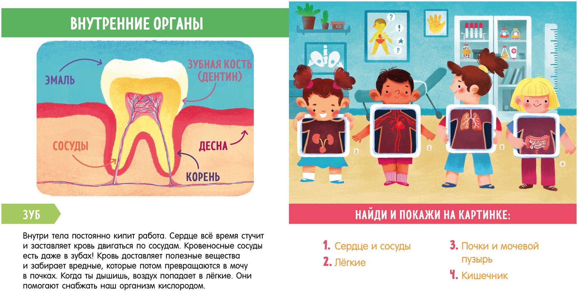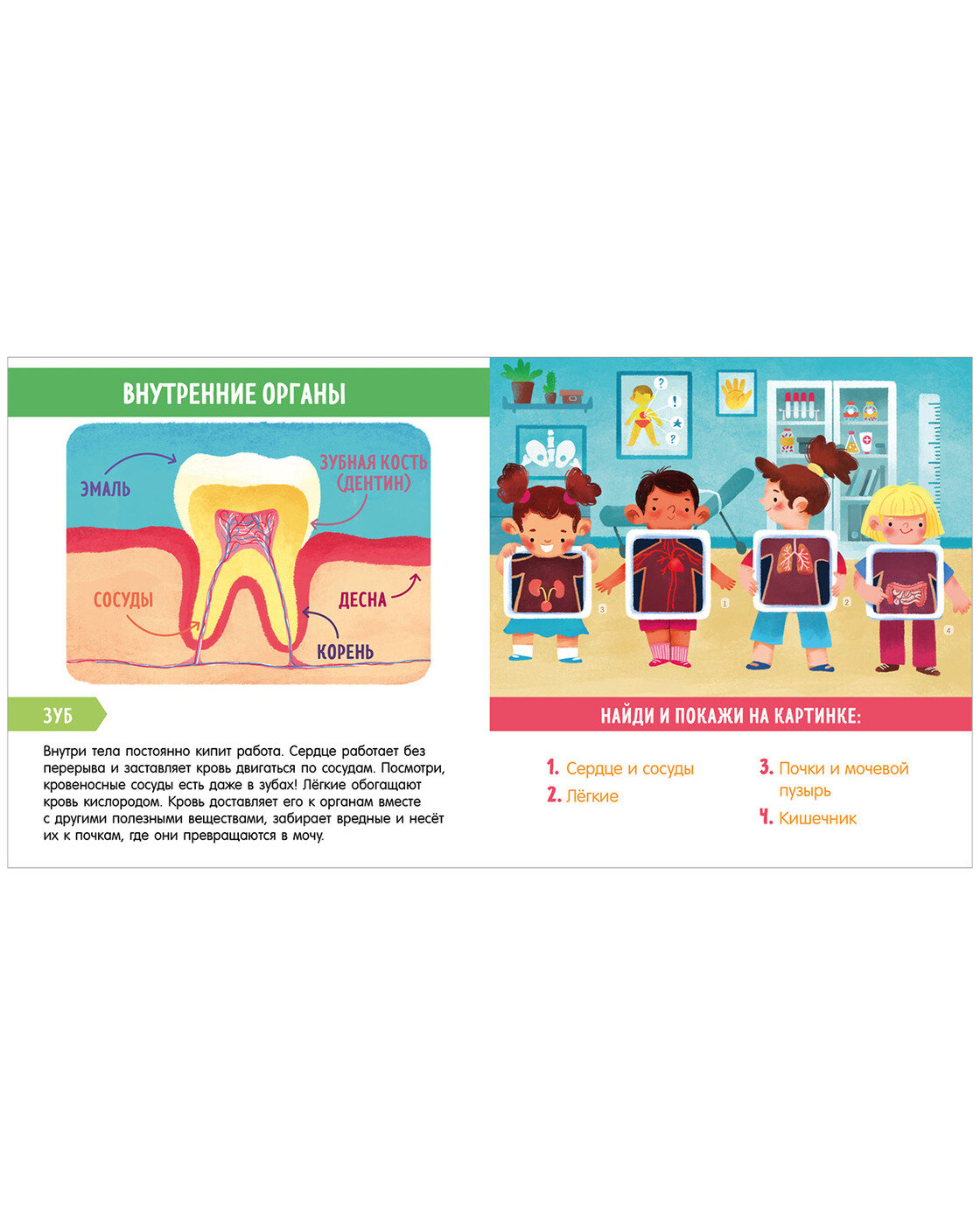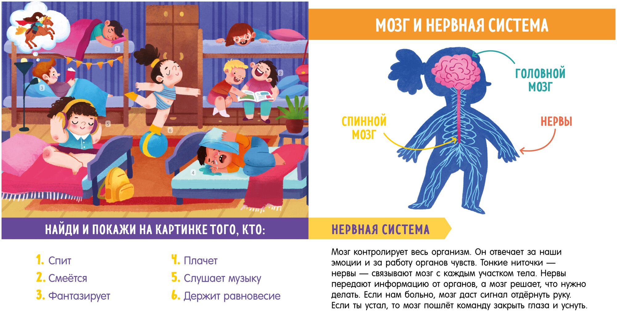 Книга "Найди и покажи, малыш. Моё тело" познакомит малыша с тем, как устроен наш организм. Играя с ней, он выучит 58 самых нужных слов о теле человека и узнает, как и зачем нужно заботиться о здоровье в разные времена года. Книги серии "Найди и покажи, малыш" - всё, что необходимо для развития речи, усидчивости и внимательности вашего ребенка! -яркие иллюстрации с крупными деталями, -предметы для поиска, -короткие понятные объяснения.