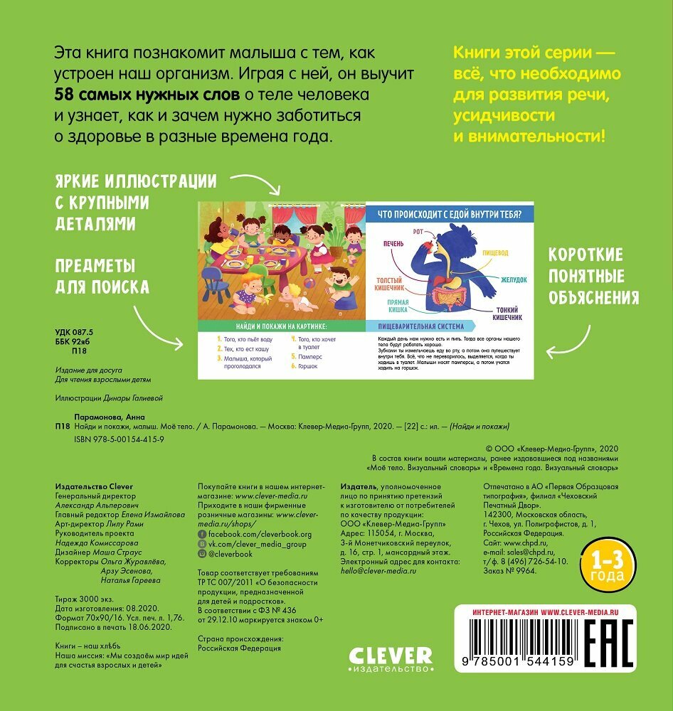 Найди и покажи малыш. Моё тело (Анна Парамонова); Издательство CLEVER, 2021