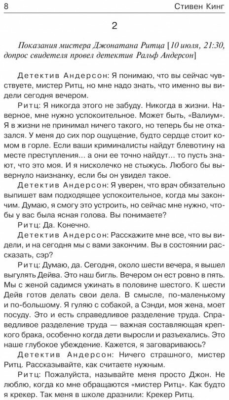 Книга очень впечатляет. Впечатляет даже не своей мистической составляющей, а фактом того, как в одночасье жизнь человека, уважаемого человека, может полететь в пропасть. Мне это произведение немного откликнулась по теме харассмента, бодро шагающего по планете. И вроде доказательства невиновности есть, но все равно наручники на футбольном стадионе, чтобы никогда уже не восстановить репутацию. В общем, не буду спойлерить. Нужно читать. Однако хочу сказать, что при очень бодром и динамичном начале, концовка кажется немного смазанной. Будьте к этому готовы. А в целом, Кинг не изменяет себе. Напряжение и дискомфорт будет с вами на протяжении всего произведения.