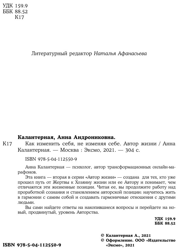 Как изменить себя не изменяя себе. Автор жизни (Калантерная Анна Андрониковна); Эксмо, 2021