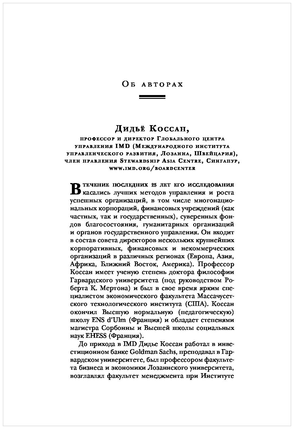 «Основным изучаемым вопросом в этой книге является тип вовлекающего и вдохновляющего лидерства. Здесь разобраны примеры успешных компаний, восточных и западных, много интересных цитат и кейсов. Обзор человеческих качеств лидера, истории построения бизнесов в сжатое время и роли деталей корпоративной культуры — все это убедительно собрано в комплексное единое целое. Эта книга — набор зримых метафор успеха». — Леонид Кроль, тренер, коуч, бизнес-консультант, директор Мастерской коучинга и тренинга Леонида Кроля, управляющий партнер проекта Incantico (Италия), профессор МП ВШЭ