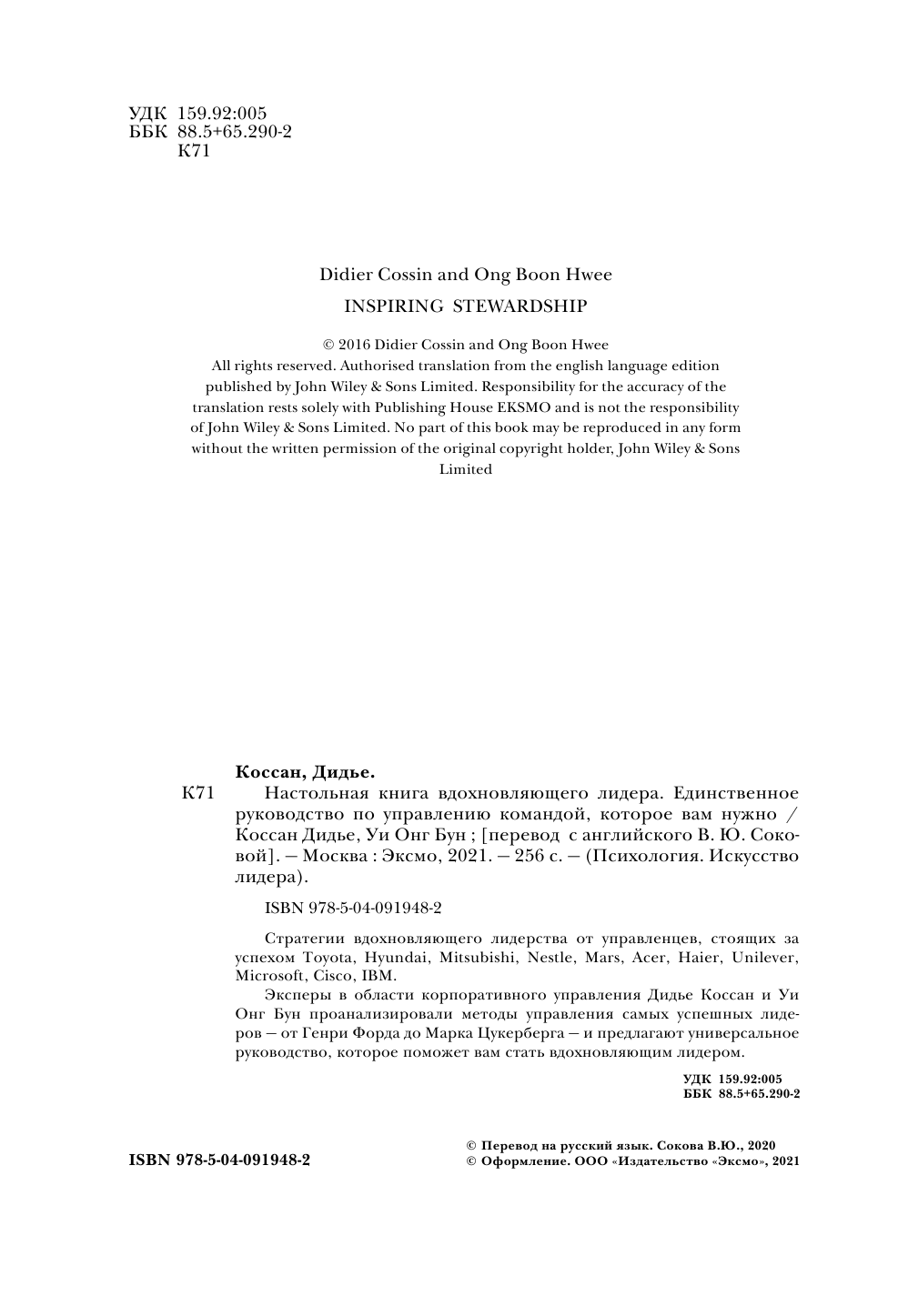 Настольная книга вдохновляющего лидера. Единственное руководство по управлению командой которое вам нужно (Коссан Дидье, Уи Онг Бун); ООО "Издательство "Эксмо", 2021