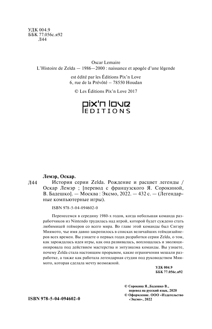 новая книга из серии легендарный компьютерных игр повествует о создании одной из флагманских линеек Нинтендо - зельда. Книга легко читается, события частично затрагивают историю самой компании Нинтендо, о которой, кстати, тоже есть книги, тем не менее она очень интересна и заняла свое место в коллекции