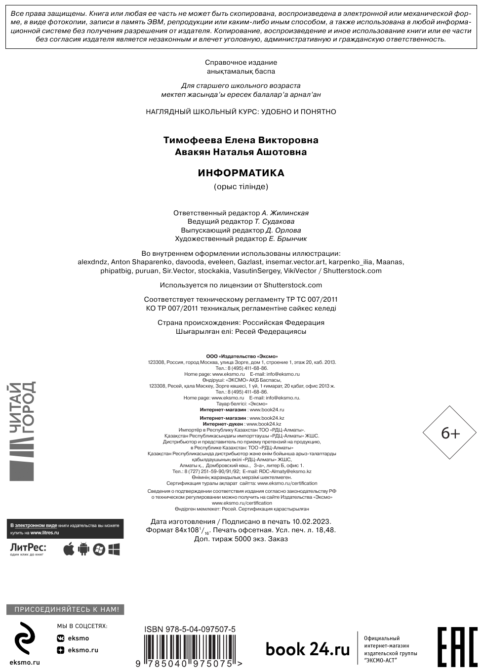 Книга: Информатика (Авакян Наталья Ашотовна, Тимофеева Елена Викторовна); ООО "Издательство "Эксмо", 2021