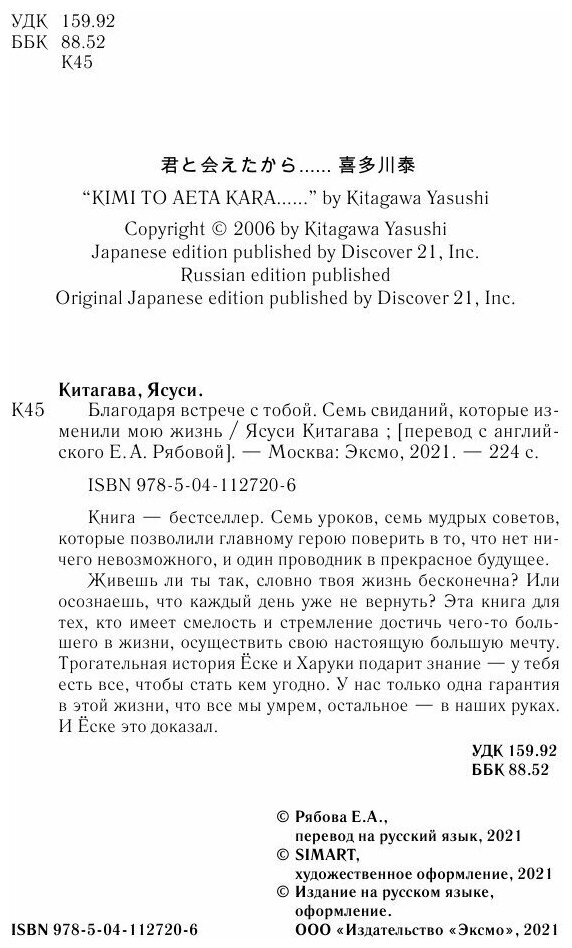 Благодаря встрече с тобой. Семь свиданий которые изменили мою жизнь (Ясуси Китагава); Эксмо, БОМБОРА, 2024